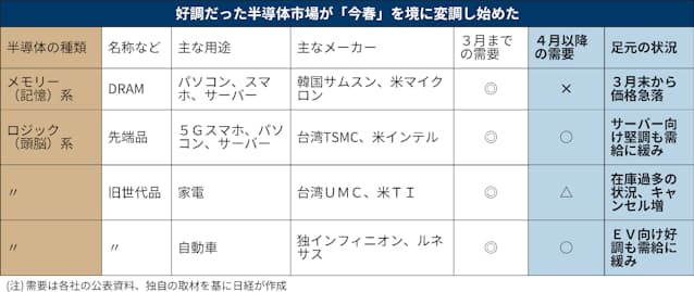 半導体不足とずっと言われてたのですが、DRAMの市況が下落するなど 少しずつ変調が見えてきています。
